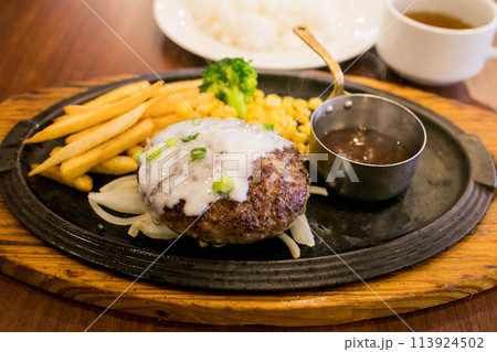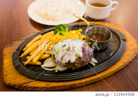 ファミリーレストランの鉄板ハンバーグ
