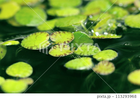 水面に繁茂する浮葉植物アマゾンフロッグビット(自然光+マクロ接写写真)