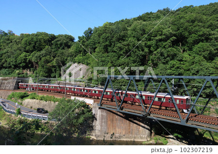 能勢電鉄 猪名川橋梁を渡る5100系電車