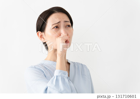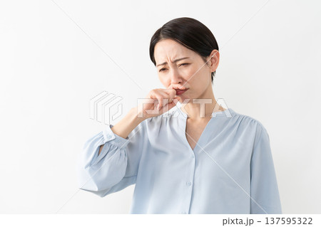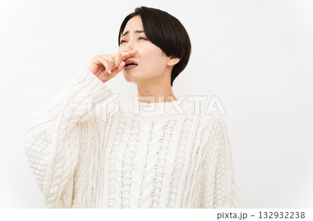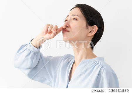 健康イメージ 鼻をすするミドル女性