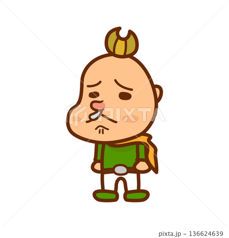 鼻を赤くして鼻水をすする男の子のイラスト