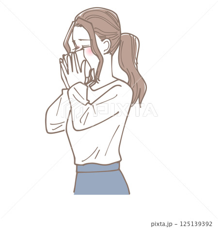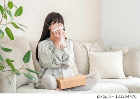 花粉症シーズンに鼻を噛む女の子(アレルギー,アレルギー性鼻炎,鼻炎)