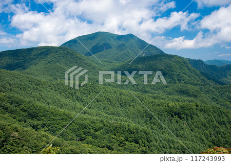 鼻曲山登山道からの二百名山浅間隠山の遠景 群馬県 日本