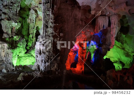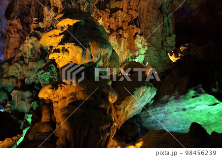 ベトナム ハロン湾 鍾乳洞のライトアップされた鍾乳石