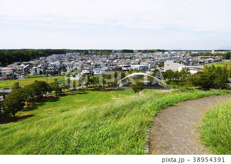 茨城県龍ケ崎市中里にある龍ヶ岡公園たつのこ山から隣接するグラウンドを望む