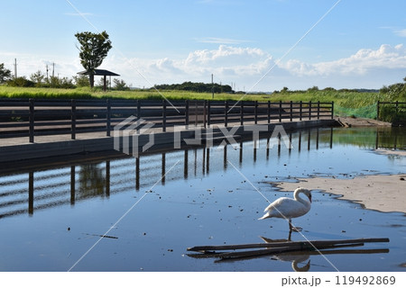 晴天の牛久沼水辺公園のコブハクチョウ 茨城