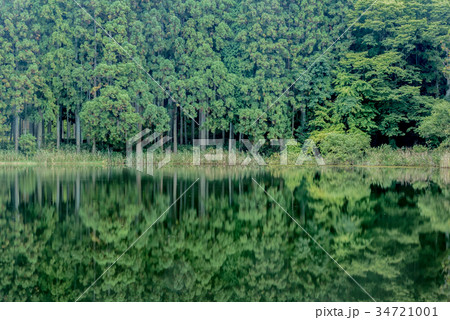 湧き水を貯めた神秘的な池「龍王ヶ淵」の水鏡風景