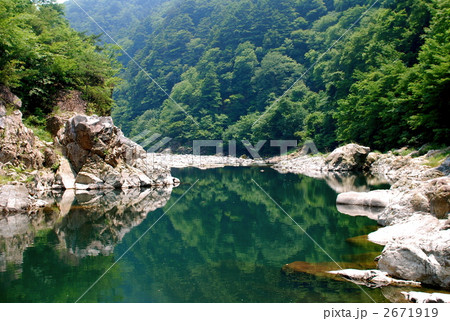 新緑の龍王峡(日光国立公園) むささび橋から上流を望む