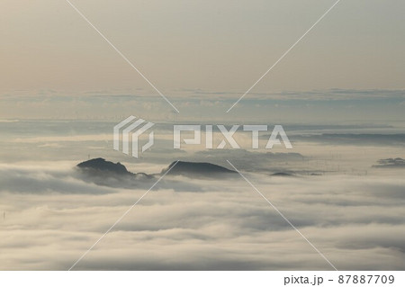 筑波連山、足尾山頂からの雲海に浮かぶ龍神山と鹿島地方
