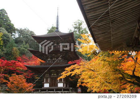 西明寺三重塔と紅葉
