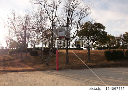 ストリートコートのバスケットゴールを撮影しました。