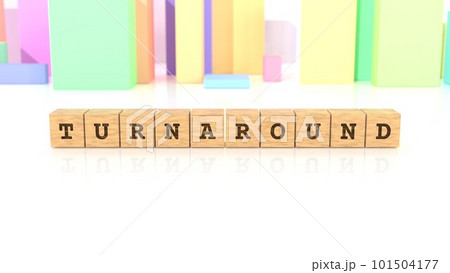 TURNAROUNDの文字が印字された木製ブロック