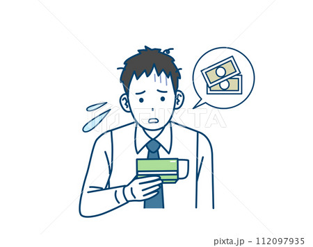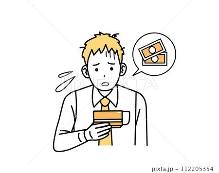 お金の心配をする女性 金欠な人のイラスト素材 お金が無い ジリ貧