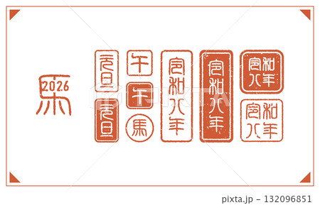 2026年(午年)篆書体の落款スタンプベクターデザイン(年賀状・お正月・干支はんこ素材)