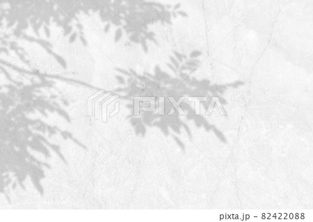 Shadow of leaves and branch on white marble wall background. Abstract black white leaf shadows