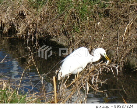 小魚を捕獲して器用に食べているシラサギさんを撮影しました。
