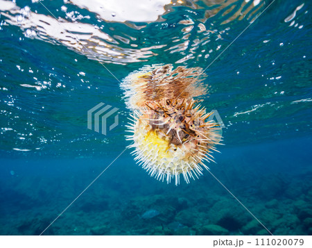 ヒリゾ浜の水面を漂う美しいハリセンボン(ハリセンボン科)。 静岡県伊豆半島賀茂郡南伊豆町中木から渡