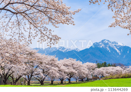 【山梨県】蕪(かぶら)の桜並木と甲斐駒ヶ岳