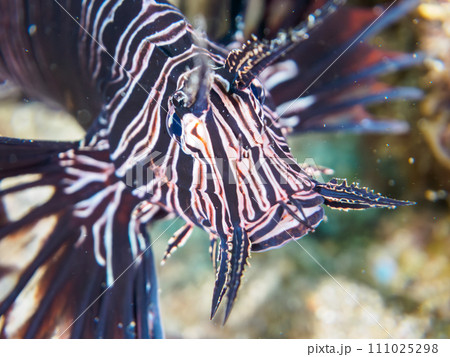 美しく大きなハナミノカサゴ。ソラスズメダイ他の群れを狙う。ヒリゾ浜中木南伊豆町伊豆半島静岡県2024