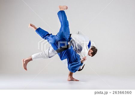 The two judokas fighters fighting men