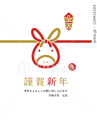 2026年 かわいい水引スタイルの午年年賀状 縦