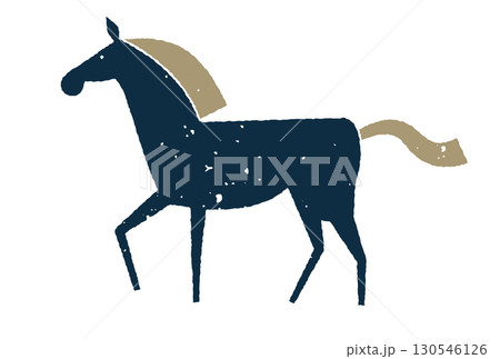 歩く馬の版画風イラスト アナログ風