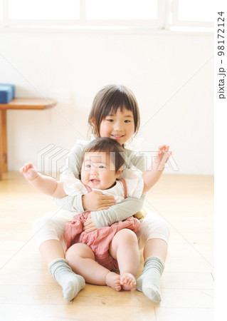 室内で遊ぶ姉妹