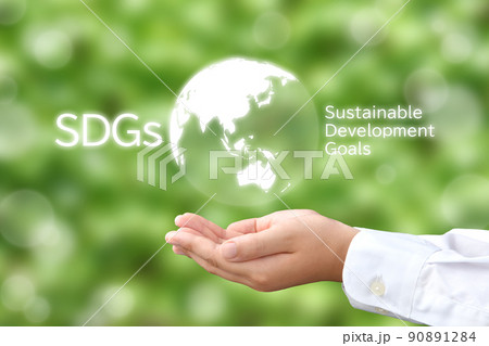 環境保護イメージ―地球を掲げるビジネスマンの手