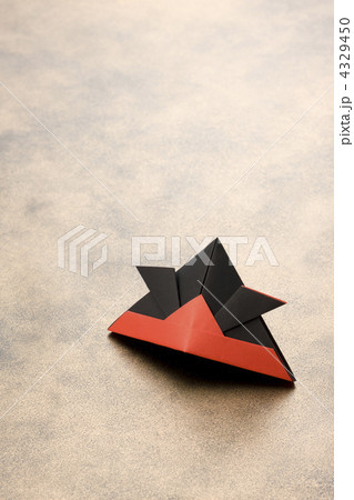 折り紙の兜と菖蒲の葉