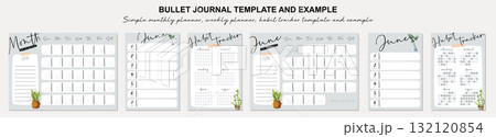 六月盆栽空白月曆子彈筆記模板,手繪風格可愛插圖設計,記事本、筆記本、待辦事項、備忘錄、日記素材圖片