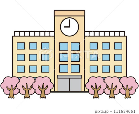 シンプルな学校の校舎と桜