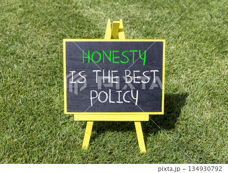 Honesty is the best policy symbol. Concept words Honesty is the best policy on beautiful blackboard. Beautiful green grass lawn background. Business honesty is the best policy concept. Copy space.