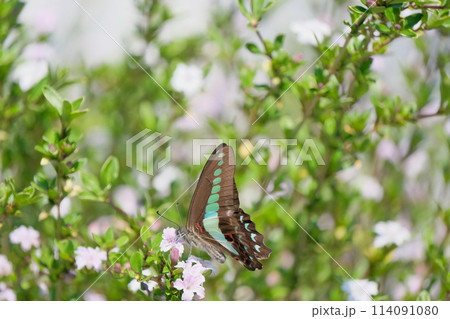 花の蜜を吸うのに夢中なアオスジアゲハ
