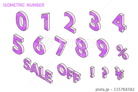 手書き風 ベクターのアイソメトリックの数字素材 紫