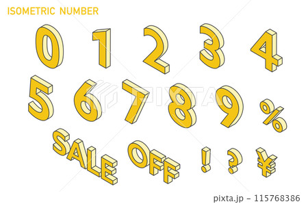 手書き風 ベクターのアイソメトリックの数字素材 黄色