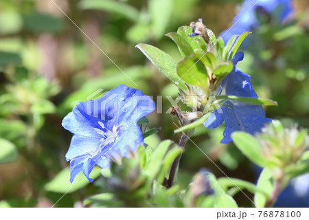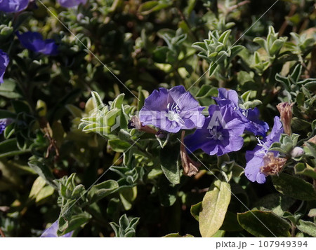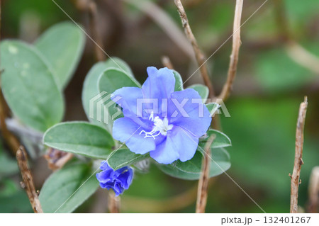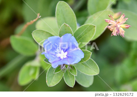 開花した青紫色のアメリカンブルーの花(Evolvulus pilosus)