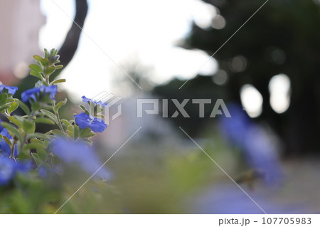 三鷹中原に咲く青いエボルブルス(アメリカンブルー)