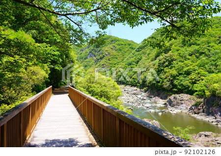 武田尾温泉、武田尾橋と武庫川渓谷(新緑の季節) /兵庫県西宮市、宝塚市