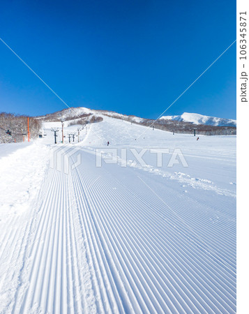 朝の圧雪したてのスキー場 (北海道、ニセコ)