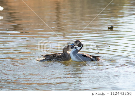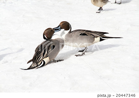 ケンカするオナガガモの夫婦 野鳥 鴨 抗争 ケンカ 戦う 生態 水鳥