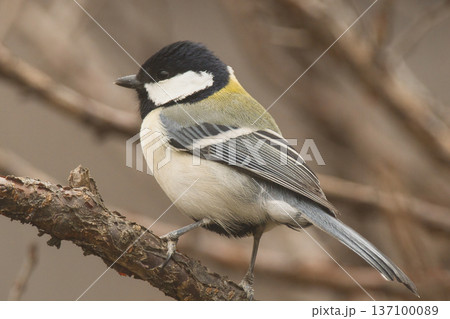 シジュウカラの野鳥ポートレート Great Tit bird perched on branch w