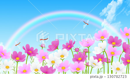 爽やかな秋の景色 秋晴れの青空に映えるコスモス