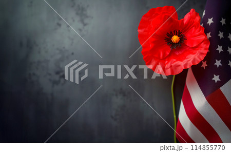 A poppy flower with American flag honoring Memorial Day AI Generative