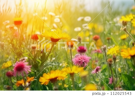 View of the summer meadow on a sunny day. Generative AI.