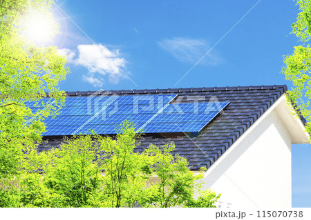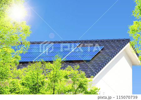 新緑とエコハウスと青空