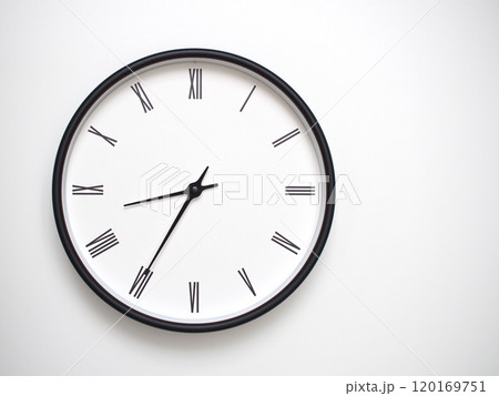 Classic Black-Edged Clock on White Background at 20.35/08.35 - Perfect for Time Management and Text Space