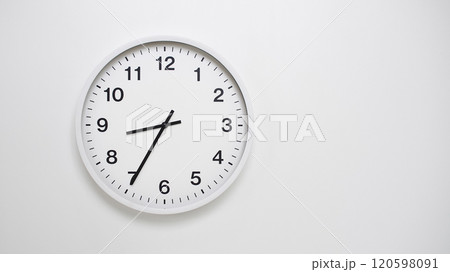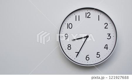 Minimalist White Clock with Silver Frame Striking 20.35/08.35 on White Background. Perfect for Time Management and Corporate Campaigns