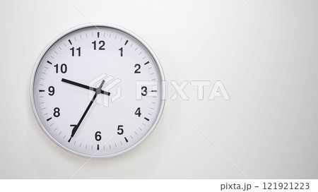 Minimalist Analog Wall Clock with White Face and Simple Black Hands Showing 21.35/09.35 - Ideal for Time Management and Modern Decor Concepts