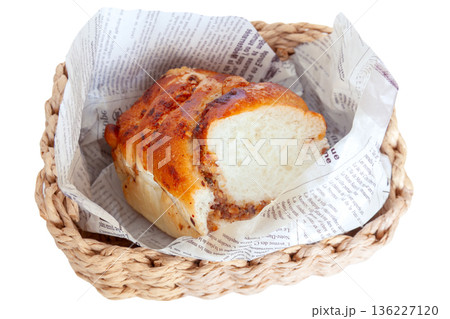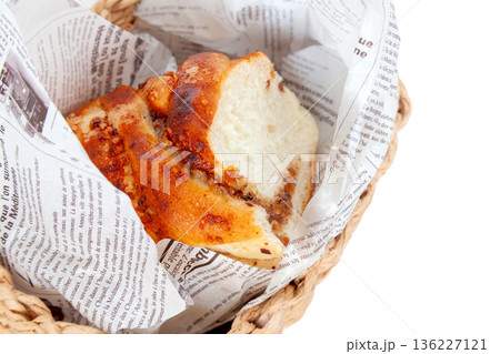ナッツいっぱいデニッシュパン、カゴ入り【白背景・切り抜き】