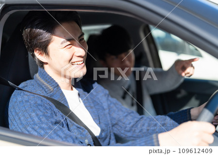 ドライブに行く若い男女